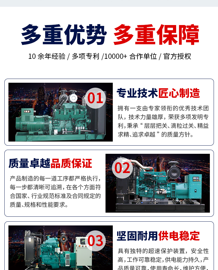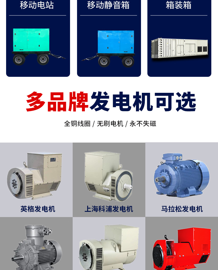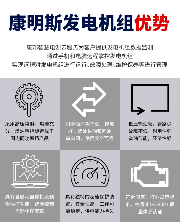 康邦可為不同行業(yè)提供30KW-3000KW不同規(guī)格、普通型、自動化、四保護(hù)、自動切換及三遙監(jiān)控、低噪音及移動式、自動化并網(wǎng)系統(tǒng)等特殊電力需求的柴油發(fā)電機(jī)組。