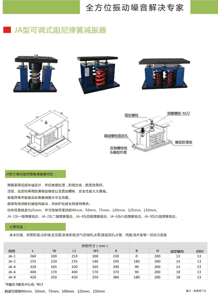 1、彈簧采用低頻率值設(shè)計(jì),并經(jīng)噴塑處理,耐候性佳,防震效果好。