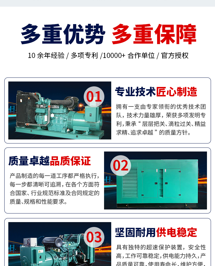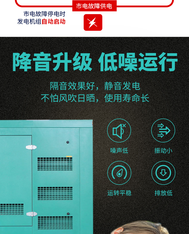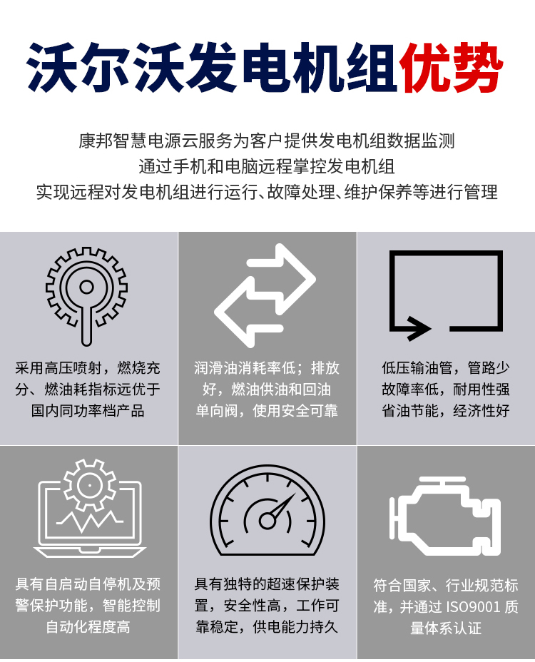 康邦可為不同行業(yè)提供30KW-3000KW不同規(guī)格、普通型、自動化、四保護(hù)、自動切換及三遙監(jiān)控、低噪音及移動式、自動化并網(wǎng)系統(tǒng)等特殊電力需求的柴油發(fā)電機(jī)組。