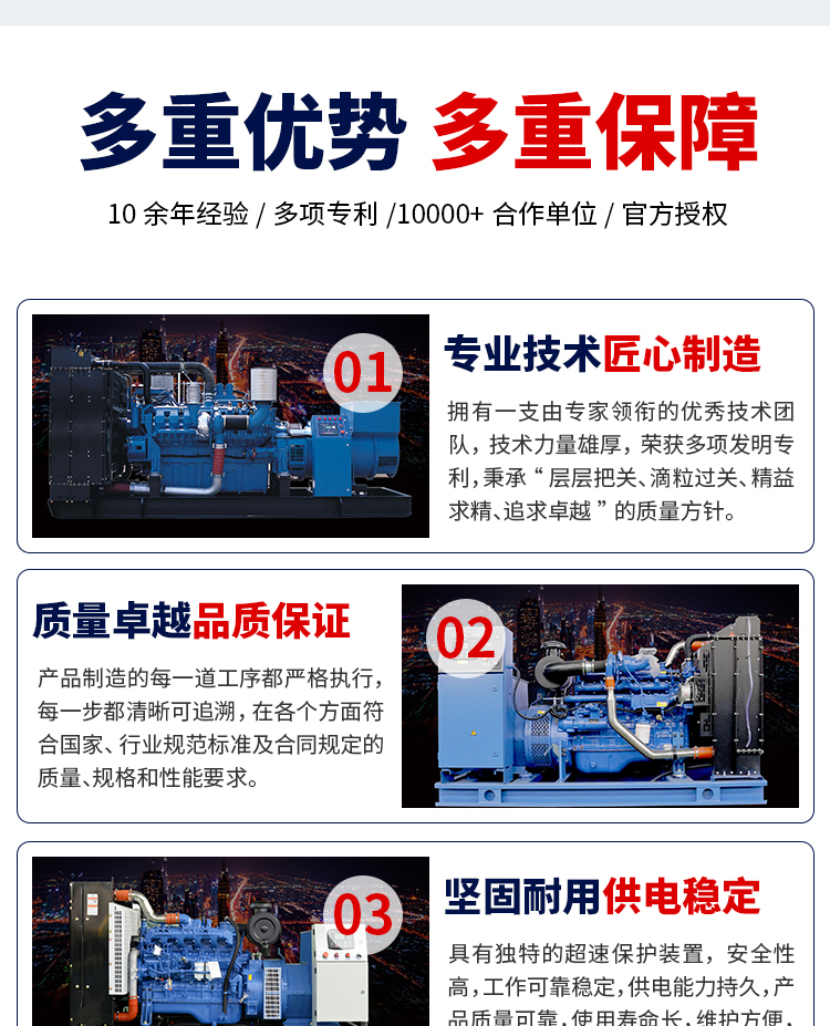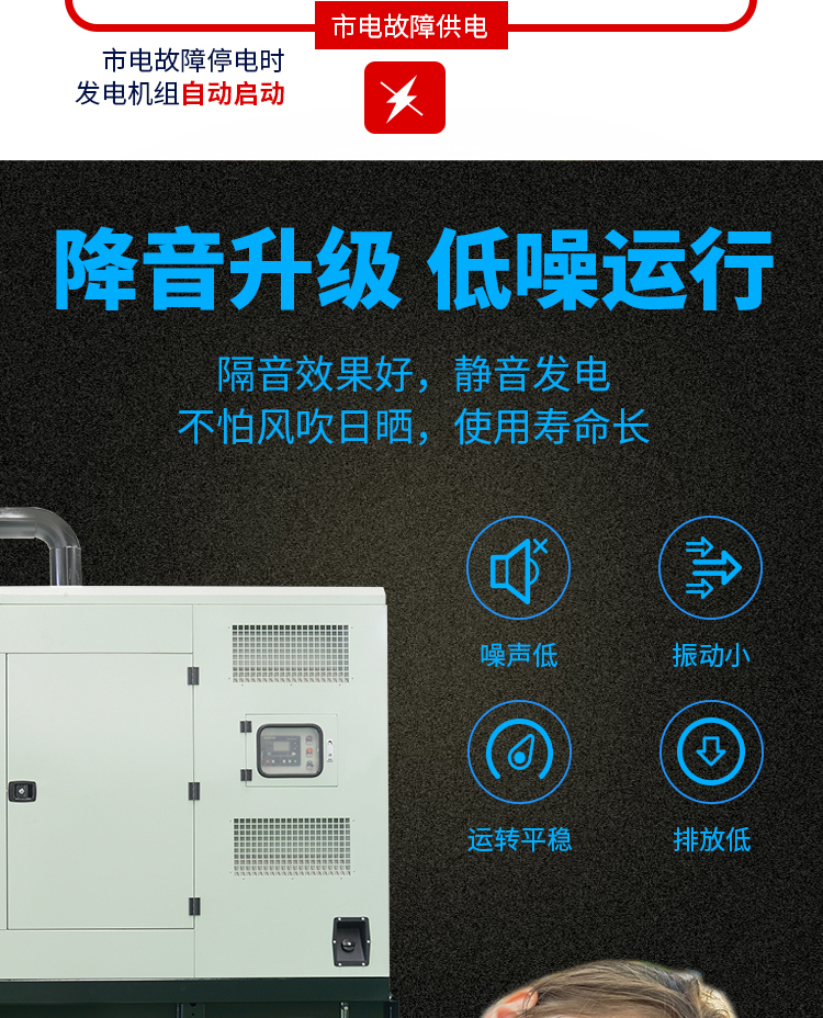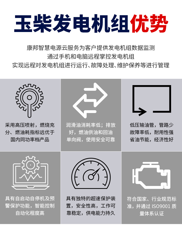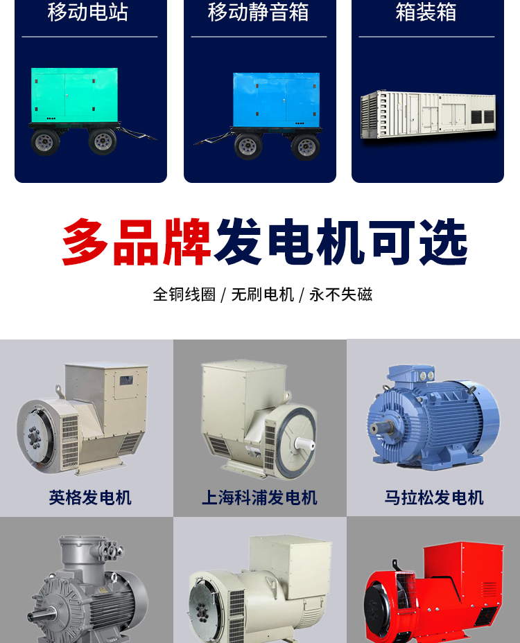 康邦可為不同行業(yè)提供30KW-3000KW不同規(guī)格、普通型、自動化、四保護、自動切換及三遙監(jiān)控、低噪音及移動式、自動化并網(wǎng)系統(tǒng)等特殊電力需求的柴油發(fā)電機組。